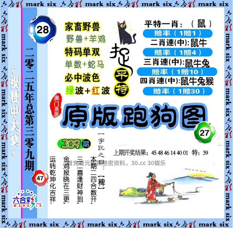 | 309期六肖 | 龙兔马蛇羊鸡 | 开:發00 |